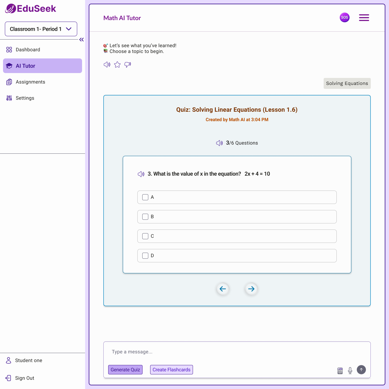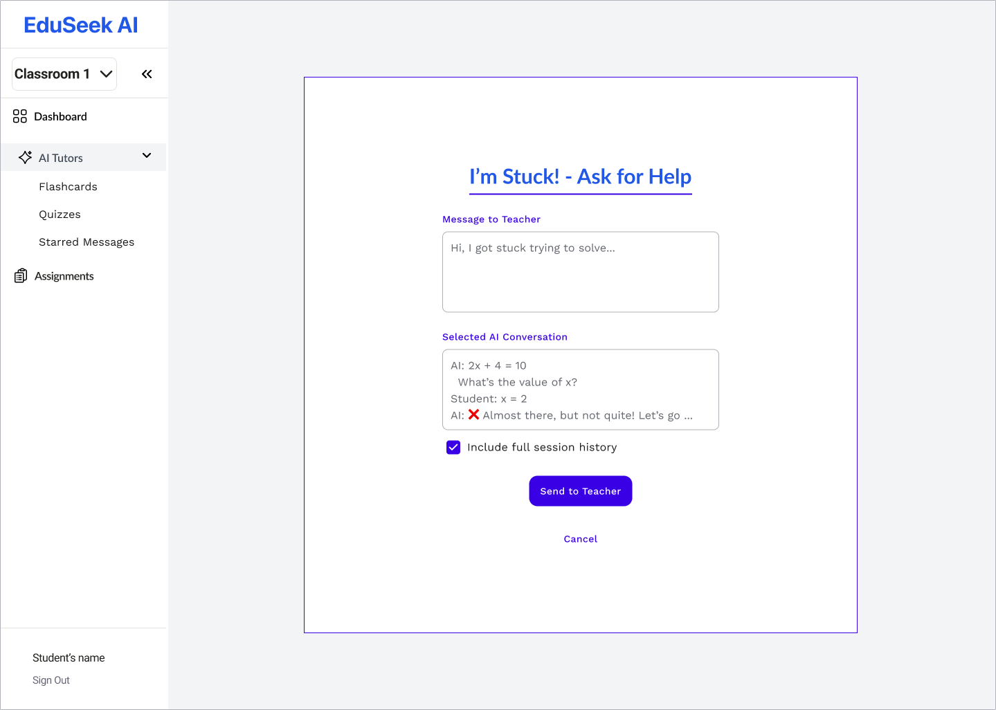 EduSeek.AI is an AI-powered tutoring platform for K–12 students, delivering personalized, adaptive learning while keeping teachers in control.