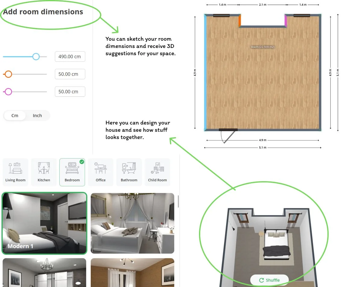 The most crucial element is the part where users select their style within a budget. It’s here that users strike a balance between style and cost, ultimately shaping the overall look of their space.